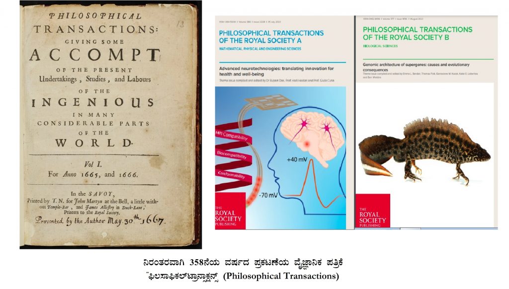 ನಿರಂತರವಾಗಿ 358ನೆಯ ವರ್ಷದ ಪ್ರಕಟಣೆಯ ವೈಜ್ಞಾನಿಕ ಪತ್ರಿಕೆ : “ಫಿಲಸಾಫಿಕಲ್ ಟ್ರಾನ್ಸಾಕ್ಷನ್ಸ್ (Philosophical Transactions)”