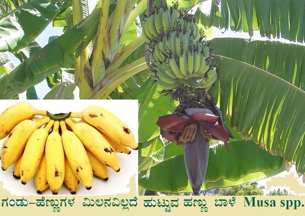 ಗಂಡು-ಹೆಣ್ಣುಗಳ ಮಿಲನವಿಲ್ಲದೆ ಹುಟ್ಟುವ ಹಣ್ಣು ಬಾಳೆ: Musa spp.